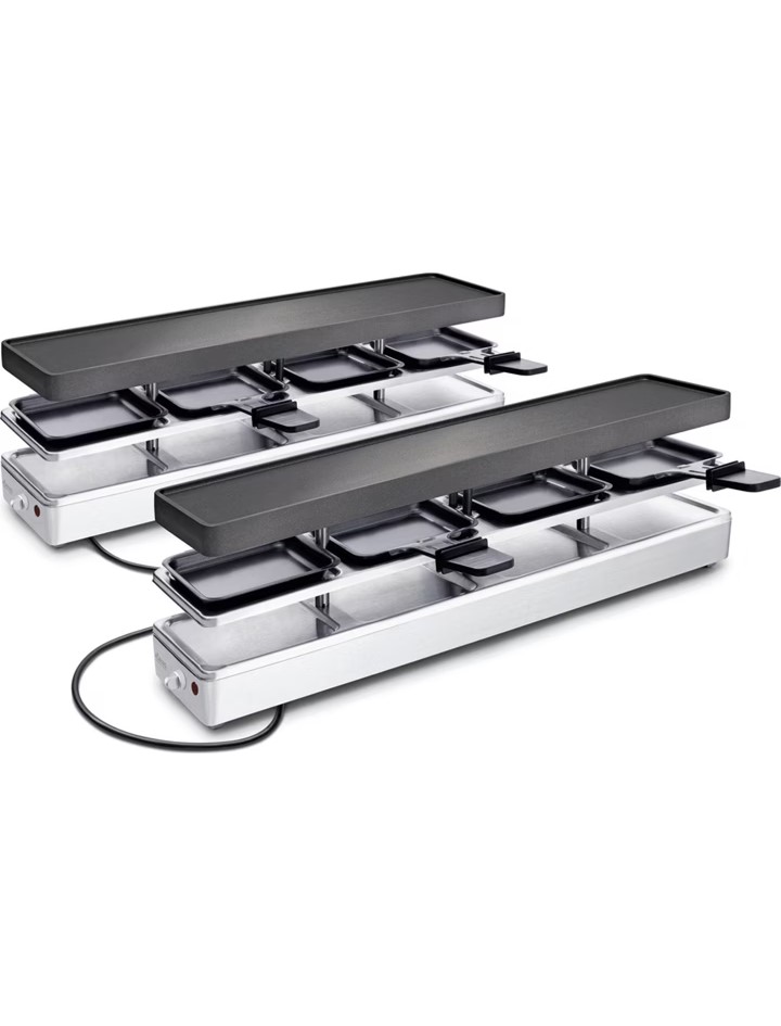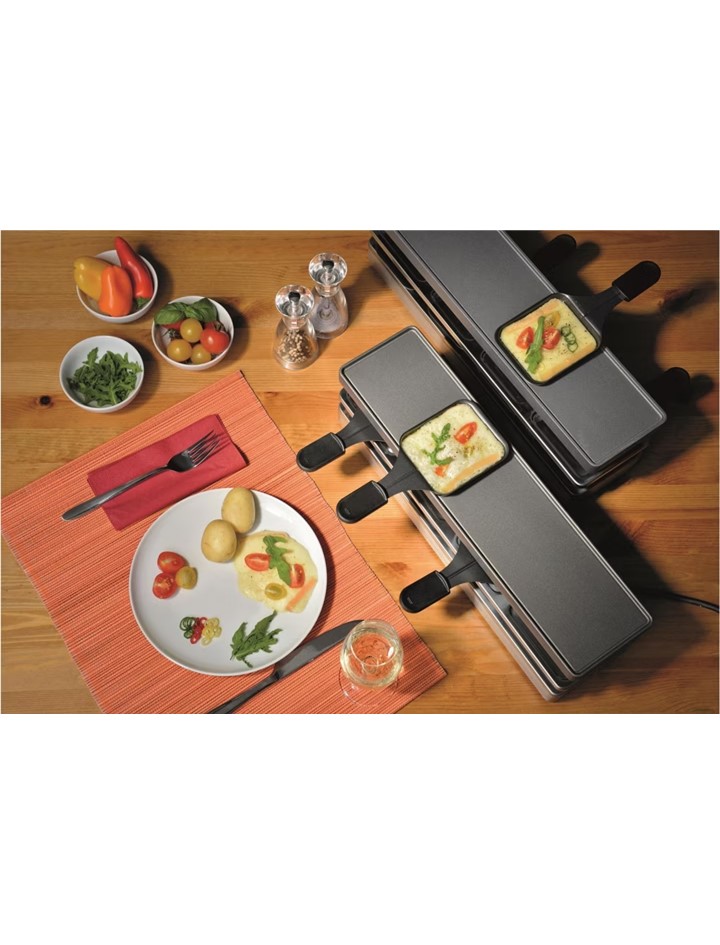 Mit dem Raclette-Gerät Duo 4 and more sind dem Raclette-Plausch keine Grenzen gesetzt. Das Set besteht aus zwei Elementen, welche Platz für je 4 Raclettepfännchen bieten.