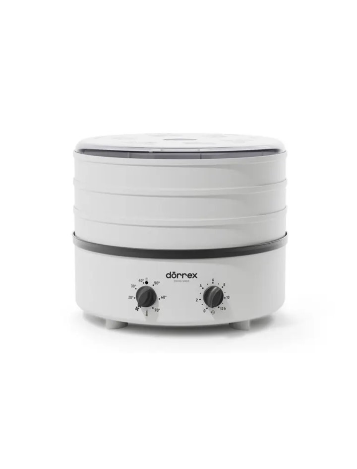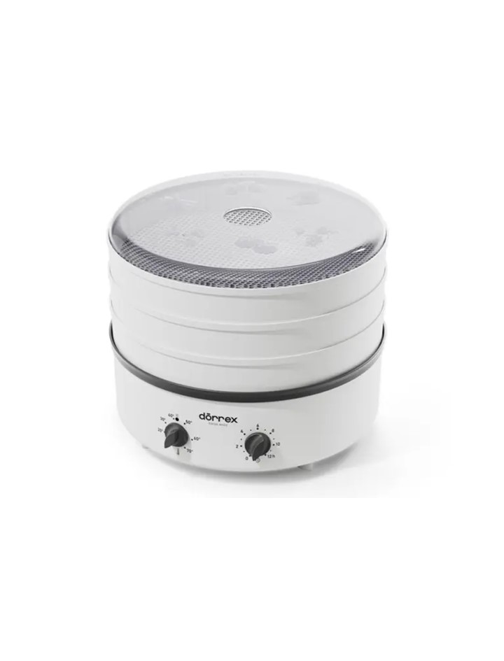 Mit dem Dörrex von Stöckli trocknen Sie Lebensmittel nach Lust und Laune. Die Temperatur ist stufenlos einstellbar und die aktive Warmluftzirkulation gewährleistet Ihnen optimale Ergebnisse. Zur einfachen Anwendung sind die entsprechenden Dörrzeiten für verschiedenste Dörrgüter auf dem Deckel eingeprägt. Das Gerät wird mit drei Dörrgittern geliefert und kann optional mit bis zu zehn Gittern betrieben werden.