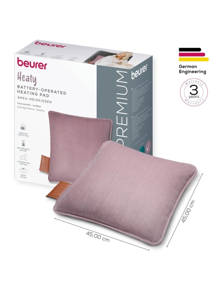 Das Beurer "Heaty" Akkuheizkissen ist der ideale Begleiter für zu Hause und unterwegs und spendet dir dank des leistungsstarken Lithium-Ionen-Akkus langanhaltende Wärme. Egal ob im Homeoffice oder auf dem Sofa, das Heaty überzeugt mit seinem stylischen Design in sechs Farben und zwei Stoffvarianten und kann mithilfe der 3 Temperaturstufen ideal auf deine Bedürfnisse angepasst werden.